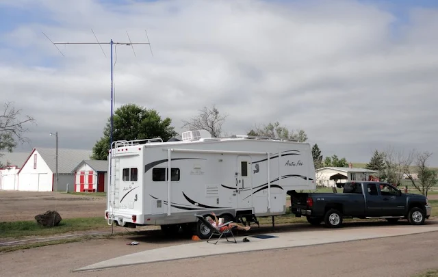 Arrived just south of Havre, MT mid-afternoon at Hill County Park, we have the whole west side of Beaver Creek Reservoir to ourselves. We stopped for a nice lunch in Chinook, MT. Windy, but station is all set up and ready. Es anyone? Anyone?